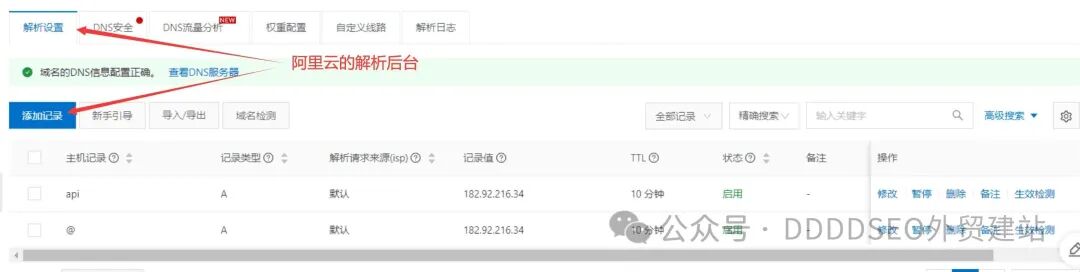 看上图就是最后2条(解析主域名网站),我们常用的外贸独立站,只要做好这2条解析,无论你是买什么服务器,都能打开,我都测试了siteground,cloudways还有hostginer,这2条足够了。