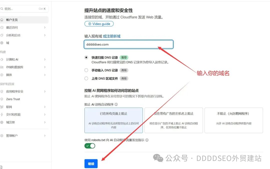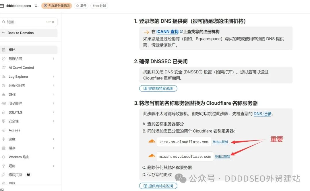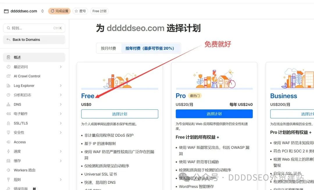 如果只推荐一家 DNS 解析服务商(解释一下:这个DNS解析工作其实是可以转移的),我只推荐 Cloudflare。原因非常现实,也非常适合外贸独立站:Cloudflare 的免费版本,就已经包含了全球 DNS 加速、基础 DDoS 防护、清晰的解析管理界面,以及极强的稳定性。