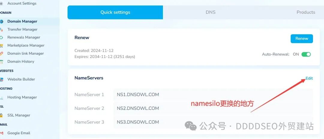 例如:namesilo后台的位置,点击更改