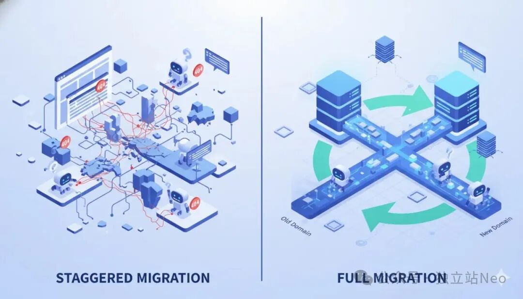 分批次迁移看似降低了技术风险,实则制造了巨大的 SEO 风险。它让谷歌的算法无法理解你的网站归属,导致权重流失、收录混乱。