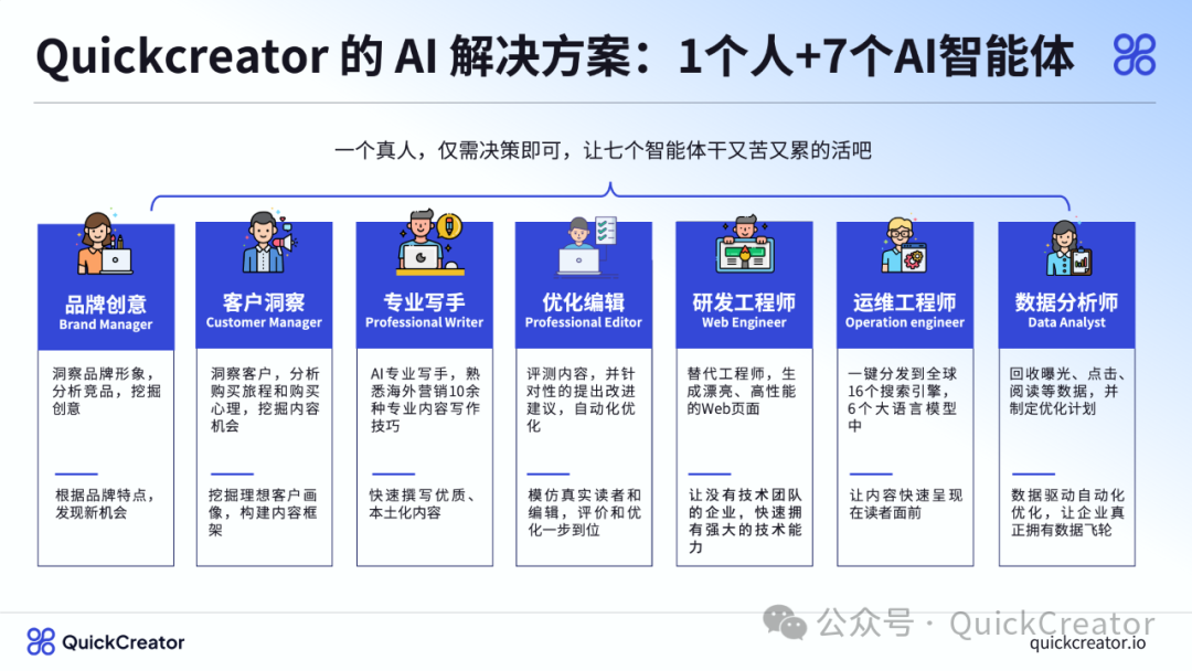3. QuickCreator vs. 通用AI(ChatGPT):相比直接使用ChatGPT这类通用大模型来生成内容,QuickCreator基于专业的AI内容引擎,针对垂直领域做了特殊优化,因此在内容质量和相关性上更胜一筹[10]。许多企业的实践也证明了这一点:采用QuickCreator之前,他们用ChatGPT等AI随意生成英文文章填充网站,但由于缺乏SEO策略和人工润色,文章“看起来很多”却没有带来流量;采用QuickCreator之后,从选题规划、关键词分析到内容写作和发布,全流程都有AI辅助且遵循SEO最佳实践,内容效果今非昔比。