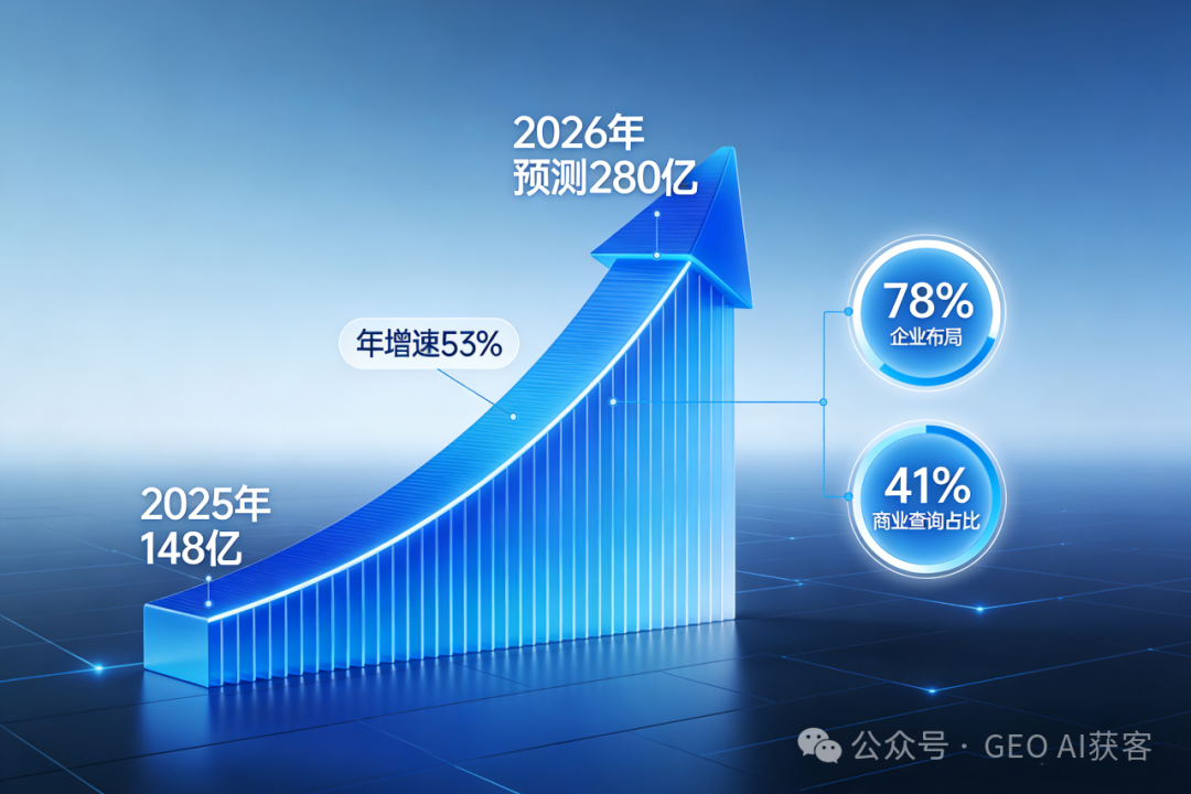 中国信通院数据印证了这一趋势:2025 年国内 GEO 市场规模将突破 148 亿元,年复合增速高达 53%,78% 的头部企业已将其纳入核心营销战略。
