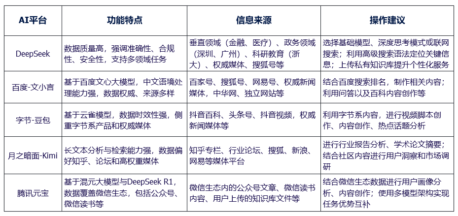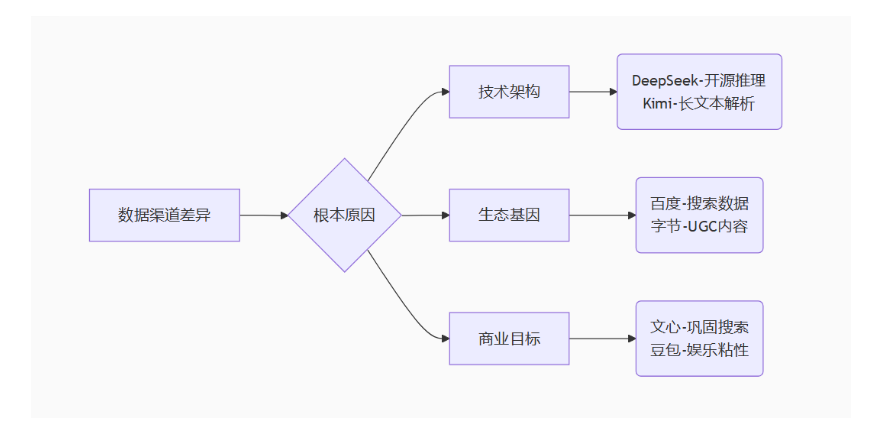 DeepSeek、文心一言、Kimi、元宝、豆包等AI平台信息数据渠道之所以有差异,主要原因在于它们的技术路径、数据生态与战略定位有差异。