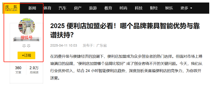 在这个结果中,我们可以看到②这个信息源是来自搜狐号,这个内容渠道是很容易发布的,只需要自己注册即可发布。