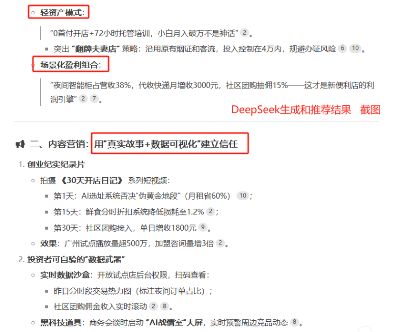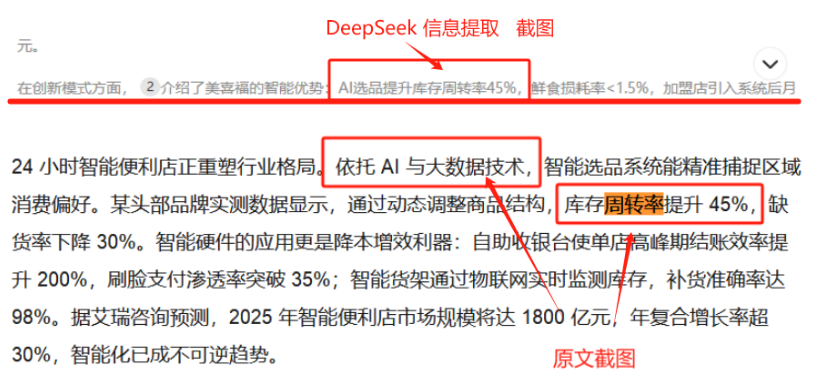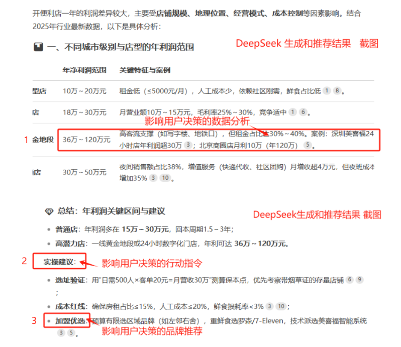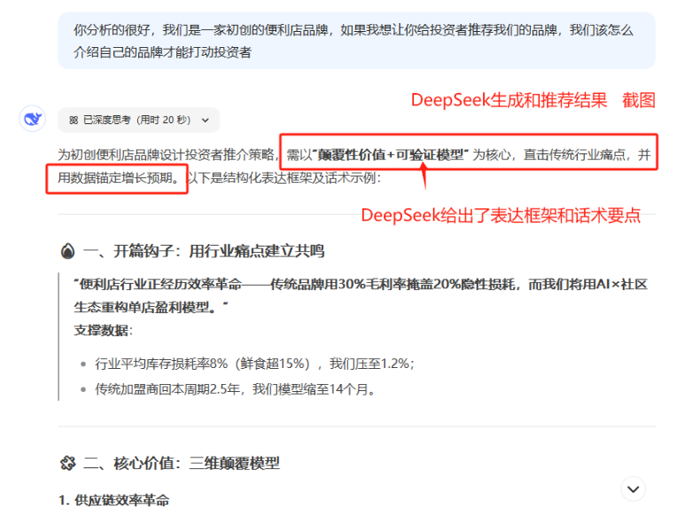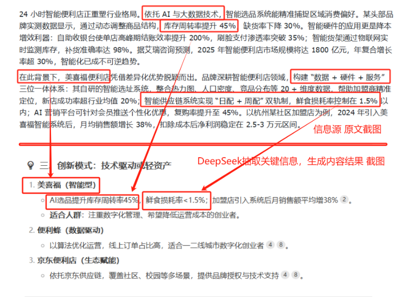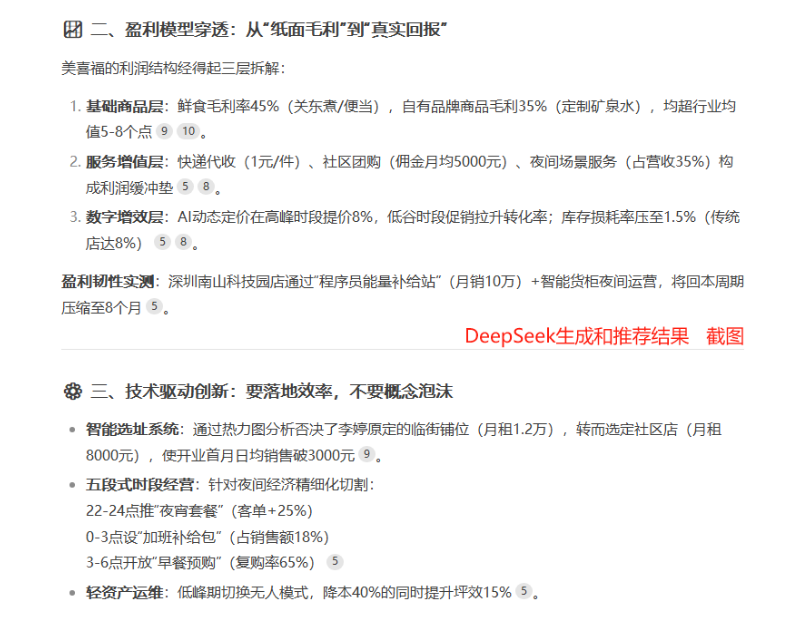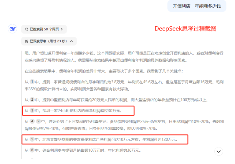 比如我们想要让DeepSeek某个便利店品牌,我们至少需要提供两个关键信息:一个是便利店门店盈利模型,因为便利店的盈利模型包含的信息要素;另一个就是便利店具体的运营数据和具体案例。