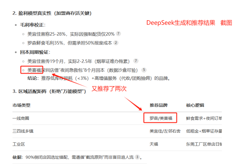 没开始之前,我们对便利店行业很多品牌,在各大AI工具推荐效果做了大量的一手调研,就是为了弄清楚AI平台推荐原理,然后根据合作品牌的优势,重新做了策略上的调整,重新设计了内容模版,然后发布到特定的媒体平台上,最后获得了非常好的推荐效果。
