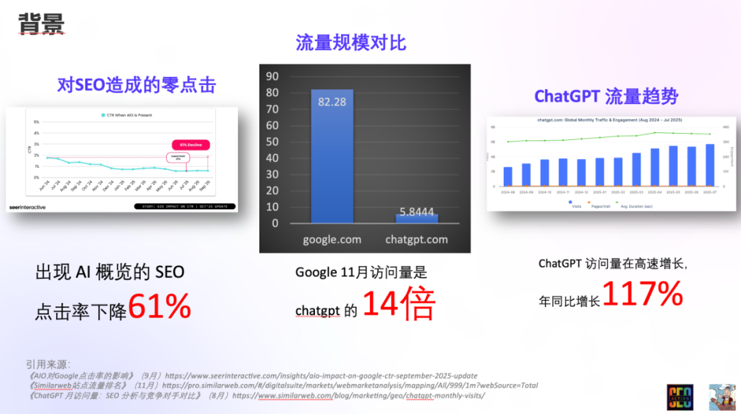 所以从当前讲,Google SEO 仍是主流渠道,仍要靠 Google 来“产粮”。ChatGPT 等 AI 搜索并未完全替代 Google 和传统 SEO。