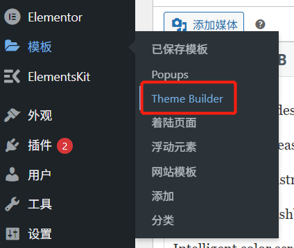 接下来我们需要把这个功能,添加到我们的产品单页上。这里我用的是Elementor编辑器,接下来给大家演示一下。https://wxa.wxs.qq.com/tmpl/ou/base_tmpl.html在模板里面找到,Them Buider,编辑产品单页模板。