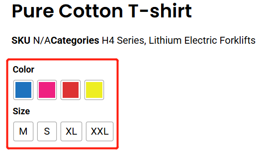 对于这个功能,需要用到一个woocmmerce的一个产品扩展插件,推荐使用Variation Swatches for WooCommerce,免费版的就够用。前提是你的网站是用的Wordpress+WooCommerce做的,不然没办法安装。