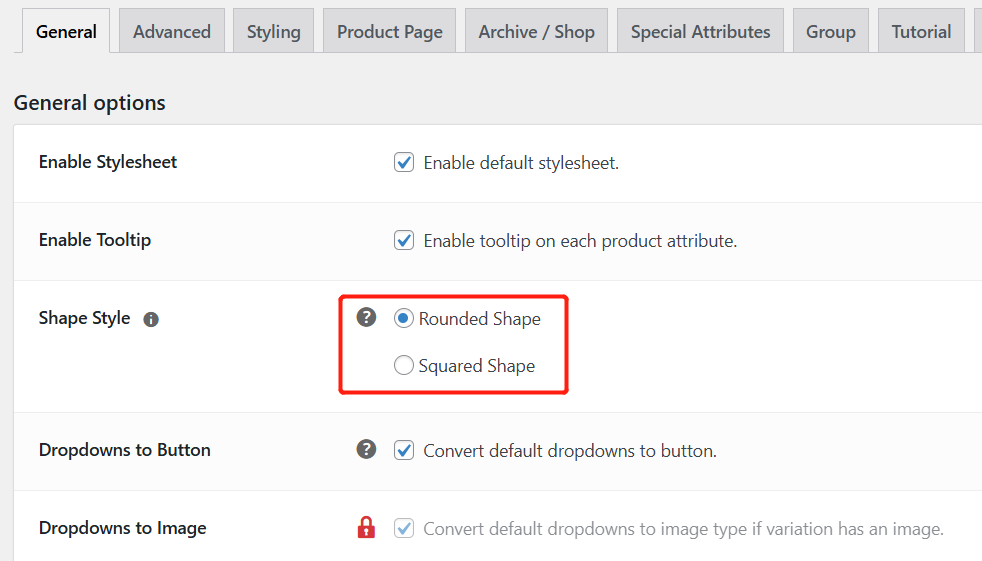 在Wordpress后台左侧边栏,找到这个插件点击设置。在常规设置里面,可以选择属性的样式,之前我选择的是圆形,你也可以选择方形,如下: