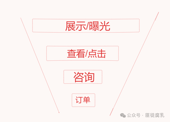 比如,一家公司第1个月投100万的广告费,转化率超高,能带来600万的销售额,那它在第2个月的时候大概率会把这600万全部投进去,然后赚3600万,然后在第3个月把3600万投进去,赚2.16亿……这样不断投下去,不到9个月就可以成为一个年营业额破万亿级的公司…但要是转化率拉胯,钱花出去没回响,就只能陷入“白烧钱”的困境。那么具体应该如何优化谷歌搜索广告的转化率呢?其实做过营销工作的人基本都知道“转化漏斗模型”:广告展现→点击→访问→咨询→订单。