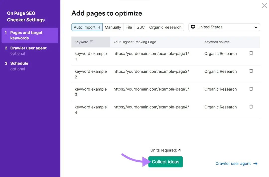Semrush:为您的 Shopify 商店创建一个文件夹,并连接您的 GA4 和 GSC 帐户,以便从您的 SEO 控制面板监控您网站的 SEO 健康状况。