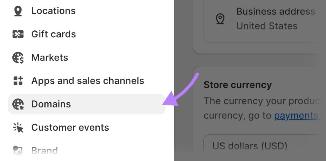 如需完全自定义域名(例如 yourbrand.com 而不是 yourbrand.myshopify.com),请点击“购买新域名”按钮并按照购买流程操作。