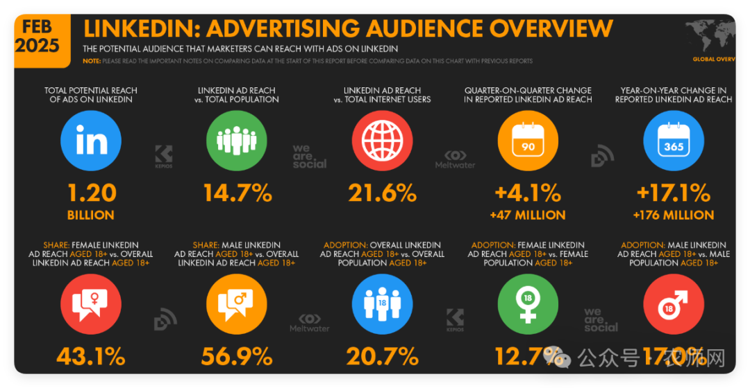 (2025年2月数据——LinkedIn领英广告受众十项核心数据概览,需要更详细的领英投流数据及案例,关注并留言回复:海外社媒投流案例)