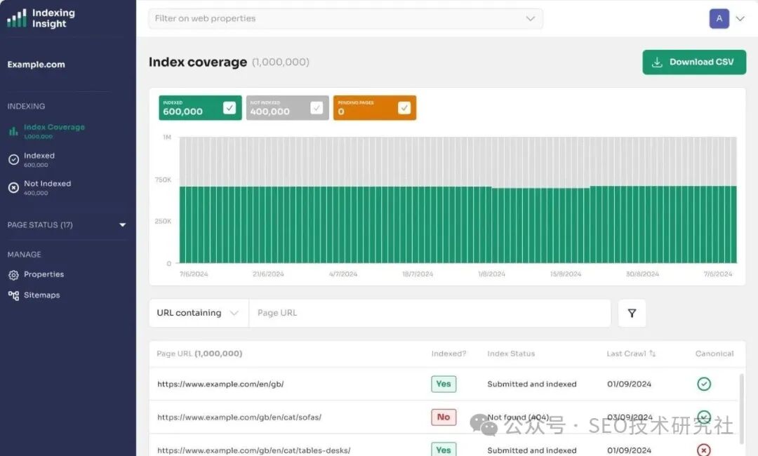 索引洞察 – Adam Gent 的超详细索引分析工具 – 是大型庞大网站的救星。每天 2,000 个 URL 并不能满足企业网站的需求。但是,通过巧妙地采用多属性方法,您可以利用每个属性 2,000 个 URL。