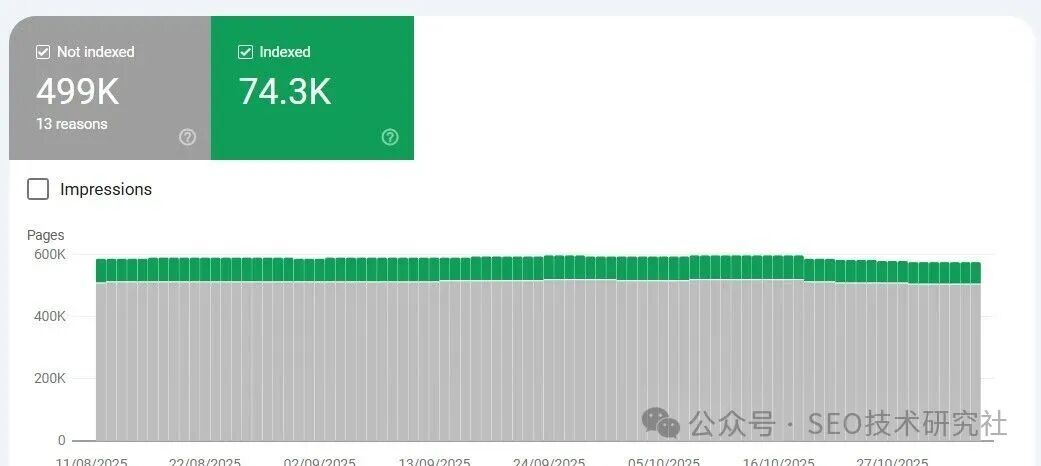 当您开始在大型网站上工作时——我说的是子文件夹有超过 500,000 个页面的网站——API 的 2,000 个 URL 限制就变得显而易见了。您只是无法有效地识别进出“为什么页面未编入索引”部分的页面。